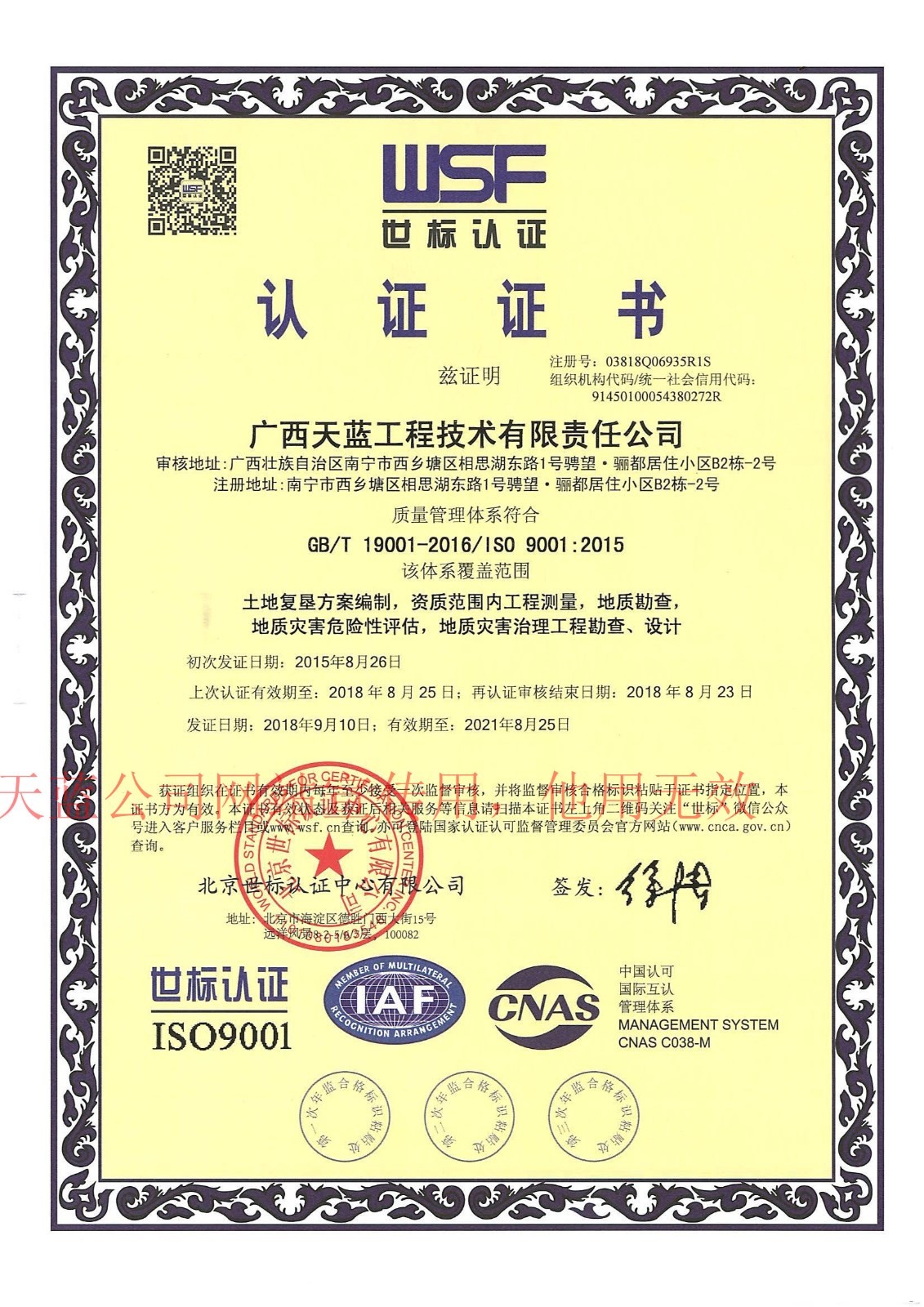 質量體系認證證書